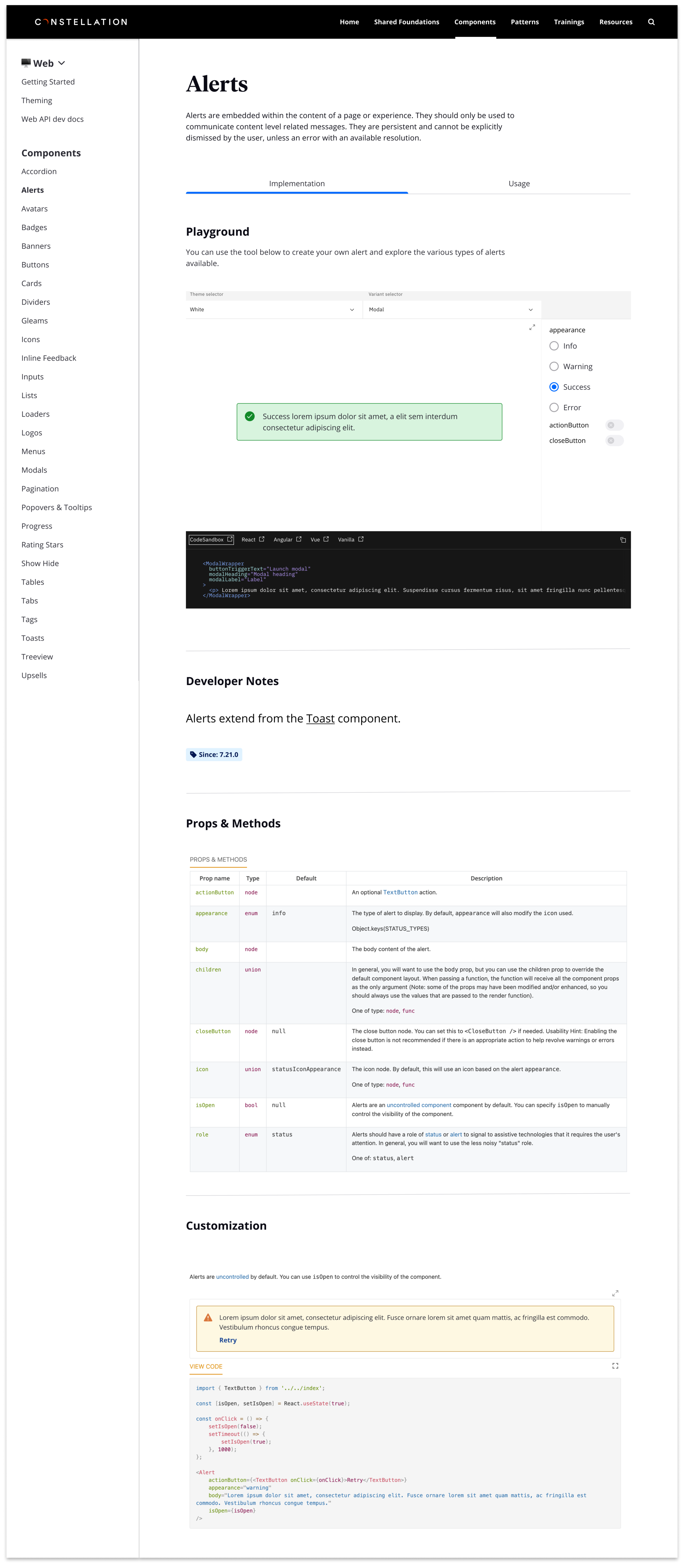 Design & dev component documentation (Alerts)