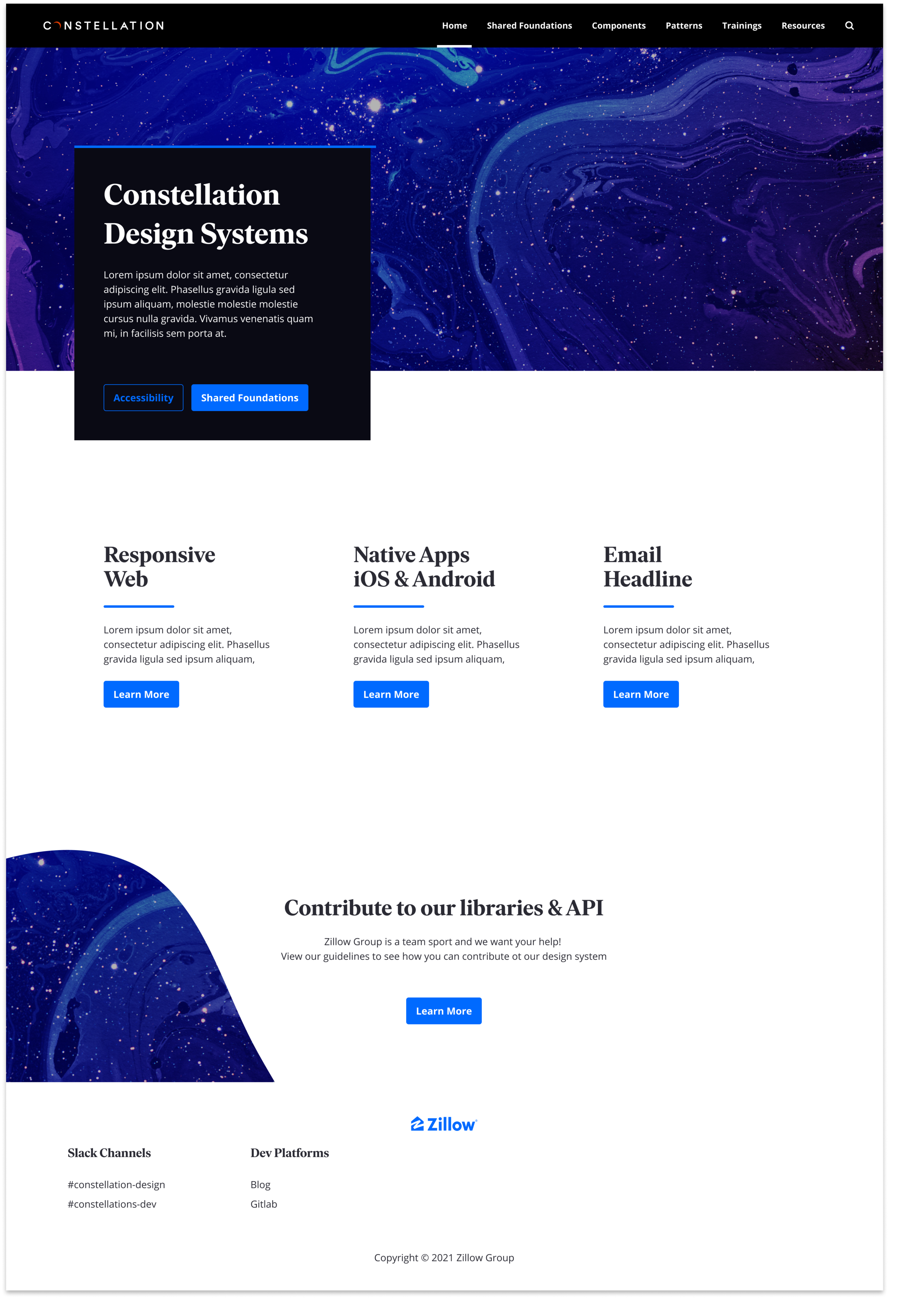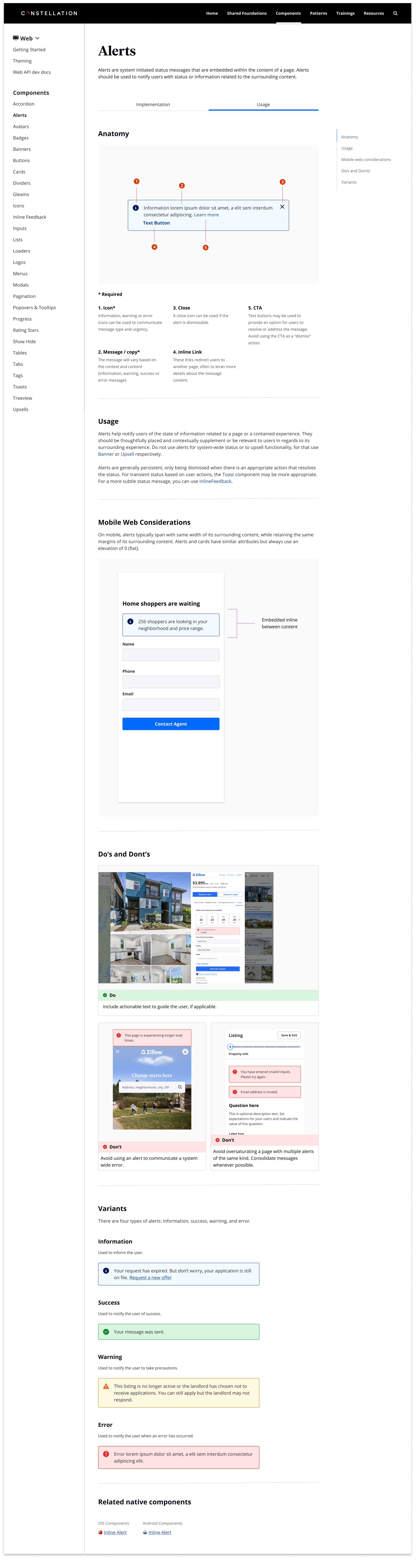 The Constellation Dual Documentation site hosts all documentation content related to the Zillow’s Constellation Web design system and includes integrated component documentation that provides both design guidelines and API usage + code playground. The unified documentation site aims to provide Constellation partners with a comprehensive, consistent, and up-to-date single source of truth for clarity, guidance and technical details on how to build high quality experiences.
