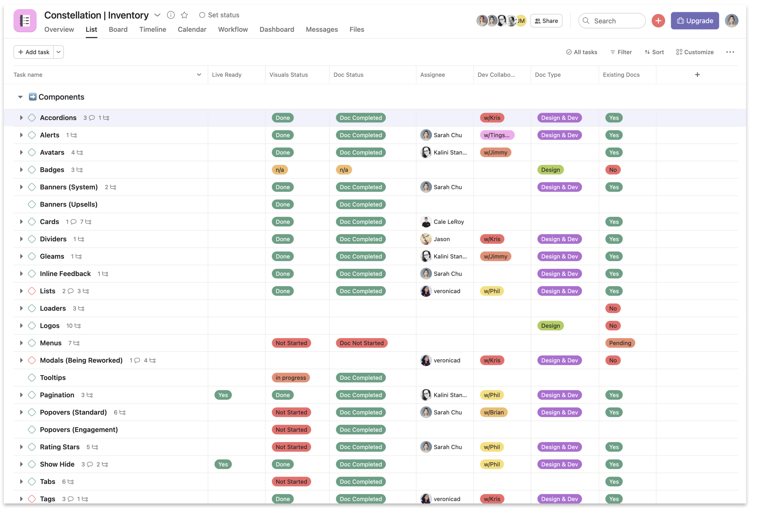 Since we have so many components in the systems library and so much existing documentation scattered in old Sketch files, we created a Asana board to organize all the moving parts and content. I took some time to hunt down all the old sketch files and linked them to each corresponding component.