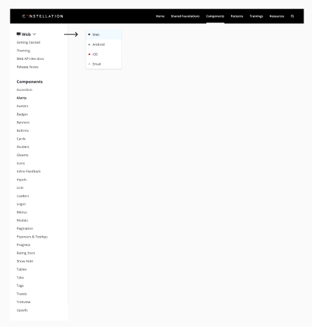 Before the Constellation Dual Documentation site, our design web documentation and developer web documentation lived in different places. This duality lead to knowledge gaps between partner developers and designers. For example, many Constellation designers had never visited the Constellation API (or even heard of it) while many of our developer partners had never visited the design Storefront.