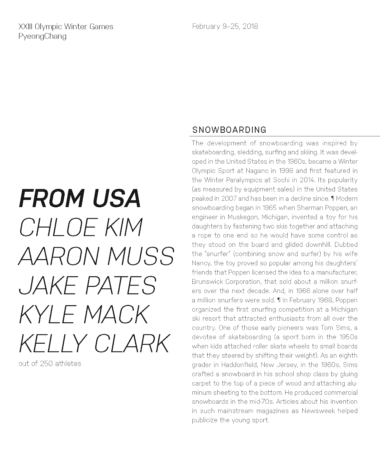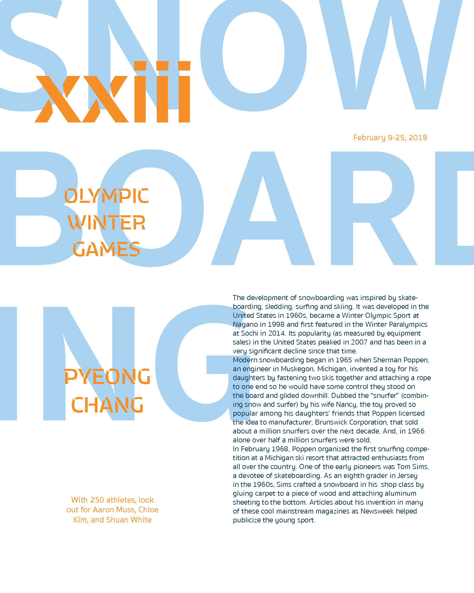 Utilizing my knowledge of typographical hierarchy (unifying + changing style/weight/size, use of color, creating good rags) to make information easy to read in a fun and meaningful way.